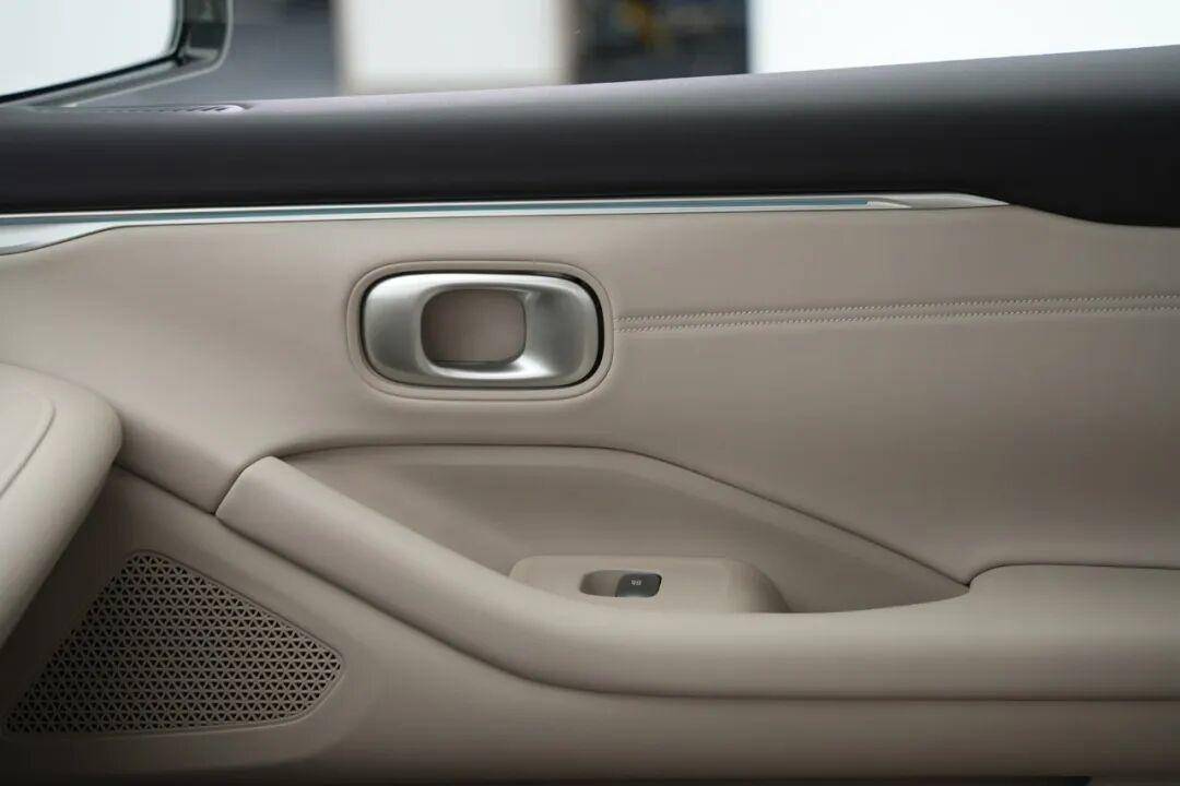 车头部分最具辨识度的是量子星环大灯,3600mm无缝衔接的前后双环灯组,点亮后光晕柔和,没有刺眼的凌厉感,契合整车的松弛定位。前脸采用封闭式纯电设计,线条流畅过渡,搭配简约的品牌标识,整体气场偏向温和,没有刻意营造攻击性,符合都市代步的气质。