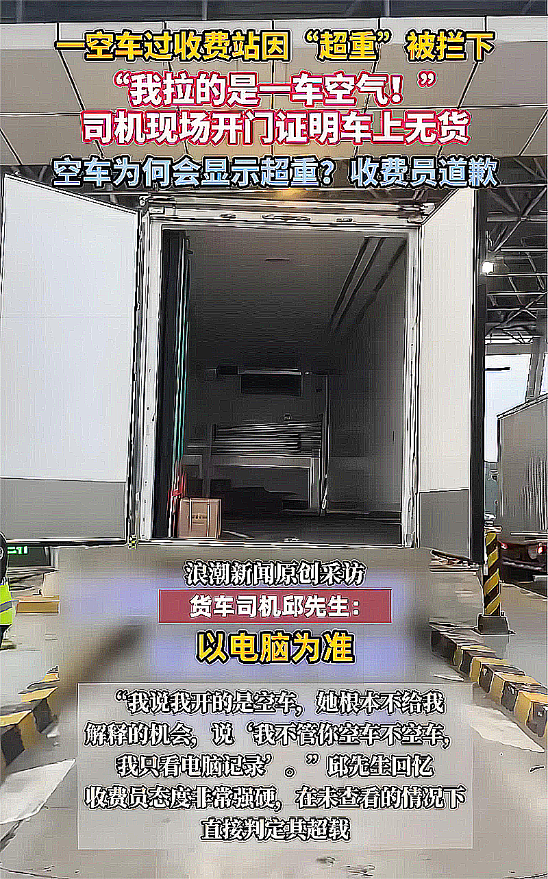 空载货车过收费站因“超重”被拦:工作人员态度强横,司机无奈开门自证