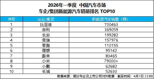 4 月 1 日,比亚迪发布 2026 年 3 月产销数据,单月总销量达300222 辆,强势突破 30 万辆大关,斩获中国车企销量冠军,并连续 58 个月蝉联中国新能源汽车销量冠军,持续稳固行业龙头地位。截至目前,比亚迪新能源汽车累计销量已超1580 万辆,一季度累计销售 700463 辆,以硬核数据印证技术与规模双重实力,助力一季度完美收官。