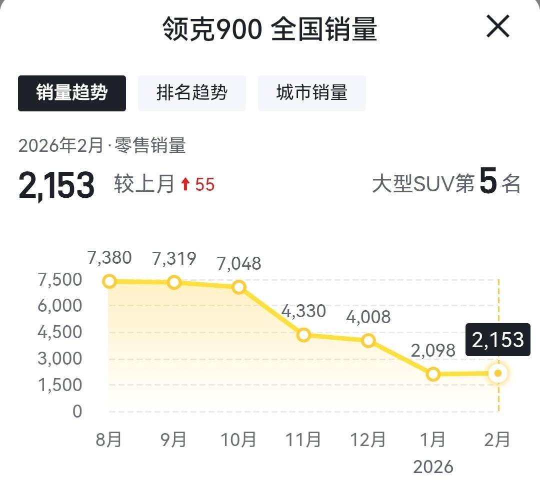 从产品布局来看,领克此番推出大五座版,本质上是对现有六座产品线的一次精准市场细分。六座版车型上市后月销一度逼近7000台,但2026年1月销量骤降至2000台出头。这一剧烈波动的根源,并非产品力崩塌,而是消费偏好的结构性分化——相当一部分买家对第三排没有刚性需求,却要为闲置座椅支付成本。
