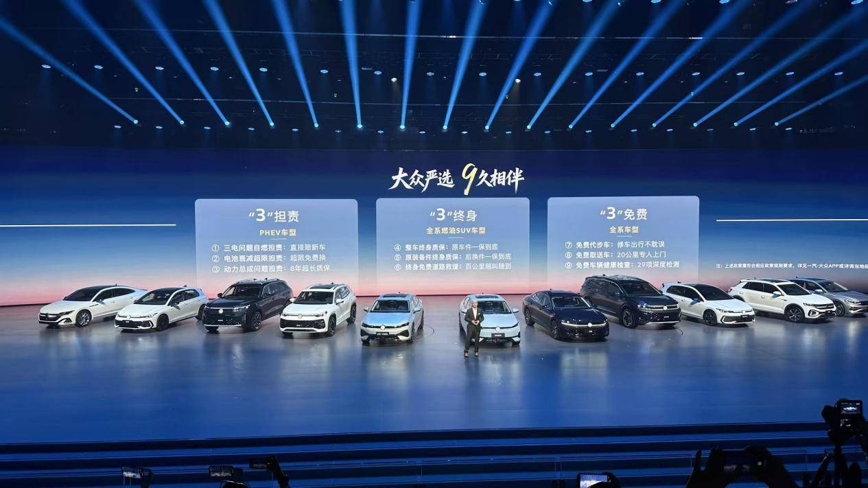 如果说五款新车是一汽-大众对市场的产品回应,那么“三担责、三终身、三免费”九大权益,则是对合资品牌服务逻辑的根本性重构。PHEV车型专属的“三担责”堪称一剂定心丸:因三电质量问题导致自燃达到报废标准,厂家免费置换新车;8年或16万公里内电池衰减超标,免费更换原厂电池。燃油SUV首任车主享受“三终身”:整车终身质保、终身100公里内免费道路救援、原装备件终身质保。全系车型更可享受维修超5天免费提供代步车、上门取送车、29项车辆健康检测等“三免费”服务。当行业仍在价格战中纠缠不休时,一汽-大众选择用全生命周期的服务承诺,回应消费者对“安心可靠、长久踏实”的核心诉求。