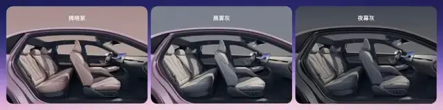 内饰在延续拂晓紫、晨雾灰、夜幕灰三款色调方案的基础上,质感上得到提升,座舱采用大面积软质包覆,其中顶棚与手机置物台选用仿麂皮材质,触感细腻柔和。中控台面板、门板开关等部件升级为UV触感漆;扬声器网罩则采用全金属蚀刻工艺,颜值明显提升。