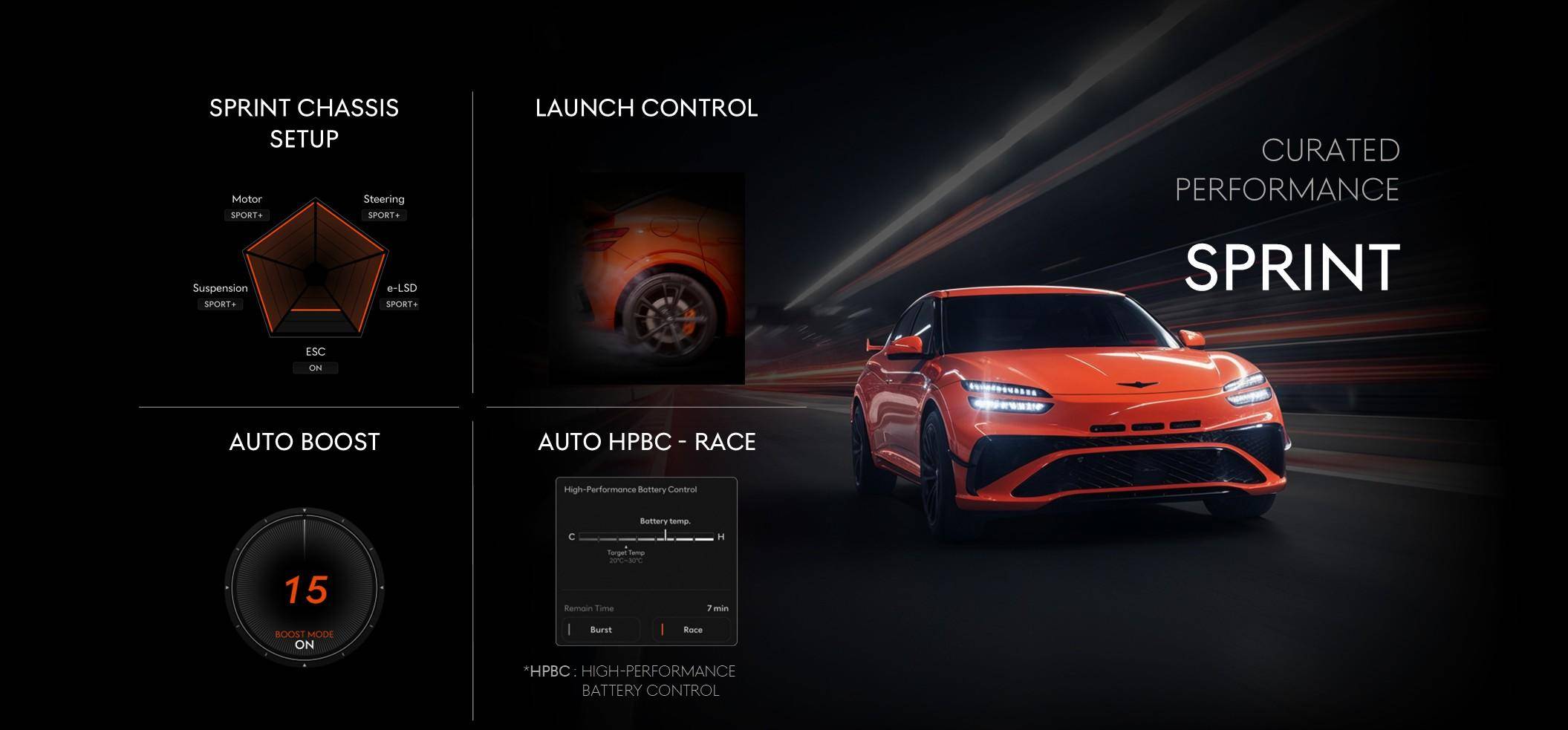 Sprint冲刺赛模式可联动Auto Boost与多项隐藏功能,进一步释放车辆潜能。车辆静止时,同时踩下刹车与油门即可激活起跑控制功能。该模式会将高性能电池管理切换至RACE模式,主动控温以保证持续输出最强动力;同时将VGS虚拟换挡系统调至最强运动设定,以更凌厉的换挡响应、声浪与逻辑,将高性能驾驶体验推向极致。