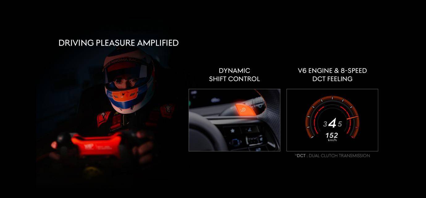 捷尼赛思GV60 Magma搭载先进的VGS虚拟换挡系统,真实复刻高性能燃油车的换挡质感。系统通过拟真声浪,模拟V6发动机搭配8速双离合变速箱(DCT)的驾驶感受。