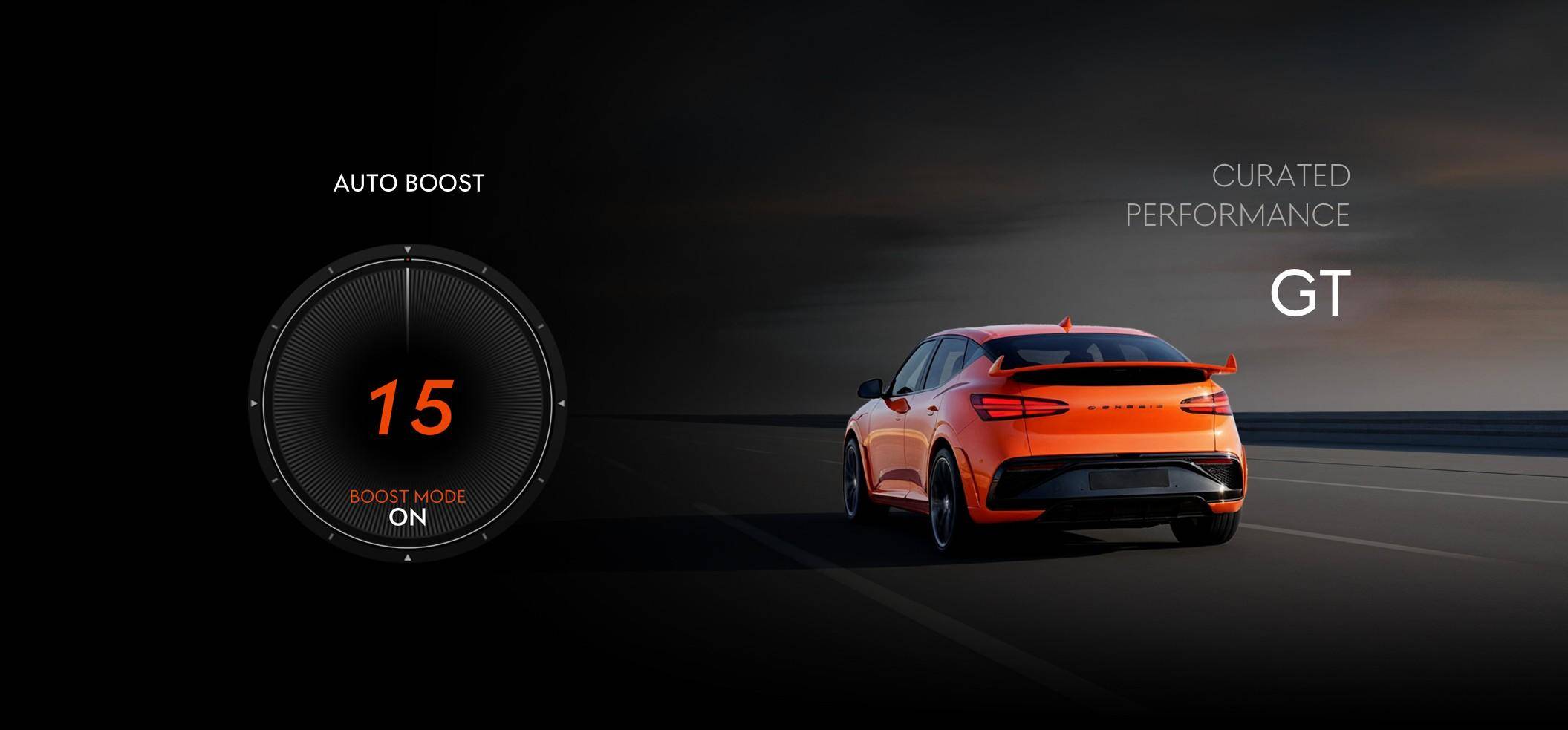 例如在GT模式下,当油门踏板完全踩下时,Auto Boost功能便会自动激活,无需额外操作即可瞬间释放最强加速性能。