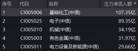 资金面上,主力资金持续加码化工板块。数据显示,截至发稿,基础化工板块单日获主力资金净流入额已高达107亿元,净流入额在30个中信一级行业中高居首位。