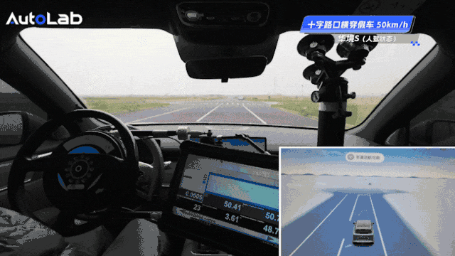 我们还原了这种情况,华境S和测试假车各以50km/h交叉直行。