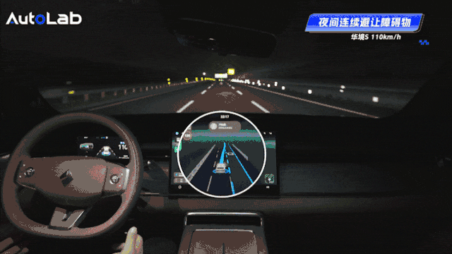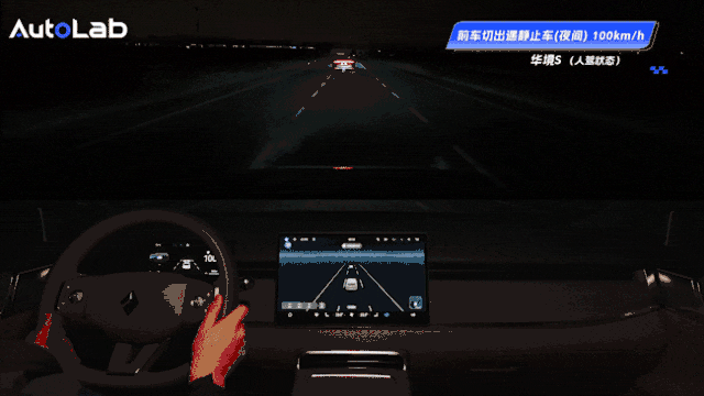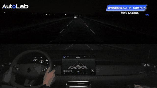 另一种高速场景是夜间环境中,前车突然加塞。
