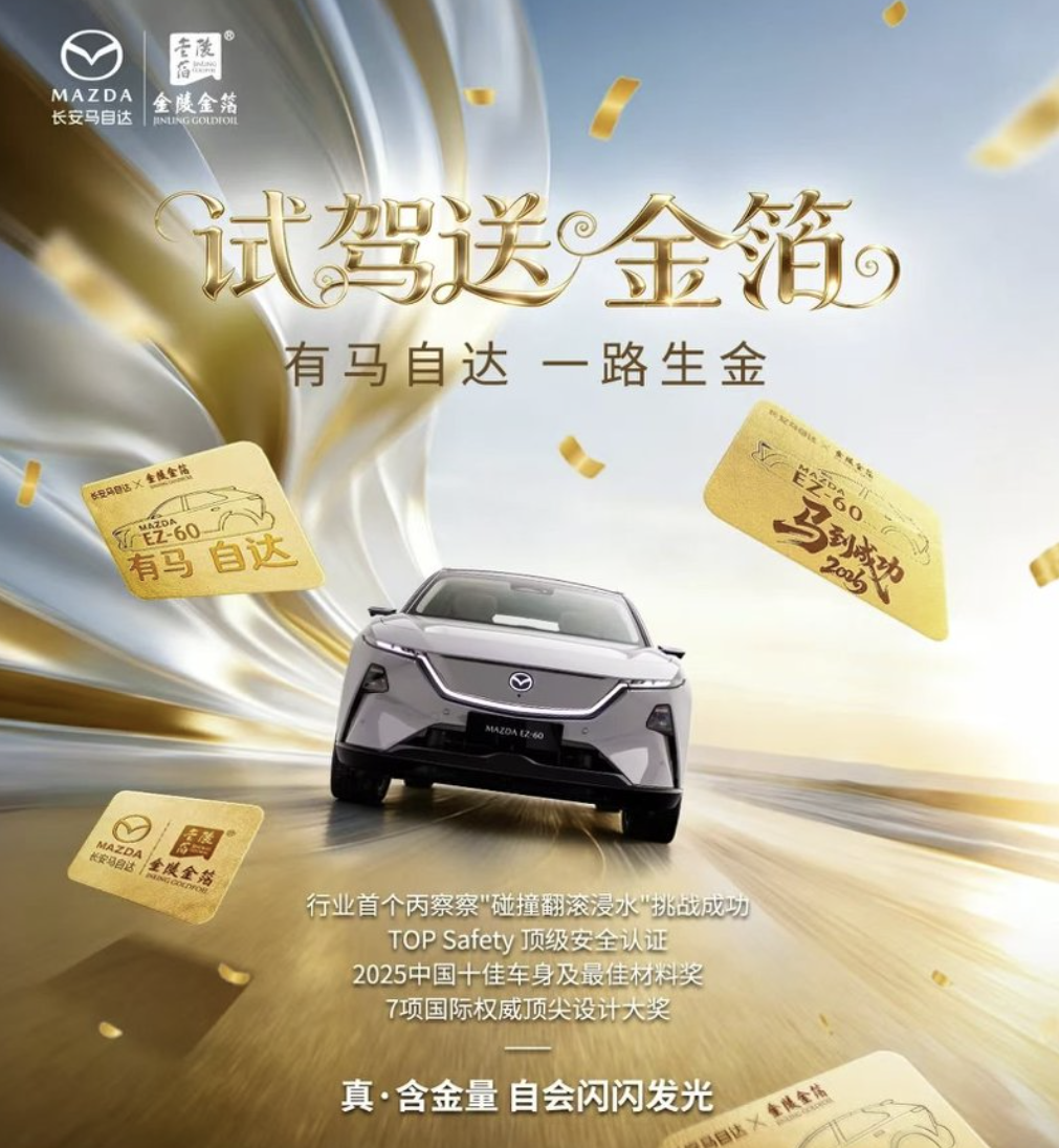 进店试驾,直接赠送国家级非遗金陵金箔。近日,长安马自达用一场“金色风暴”,重新定义了竞争的维度。