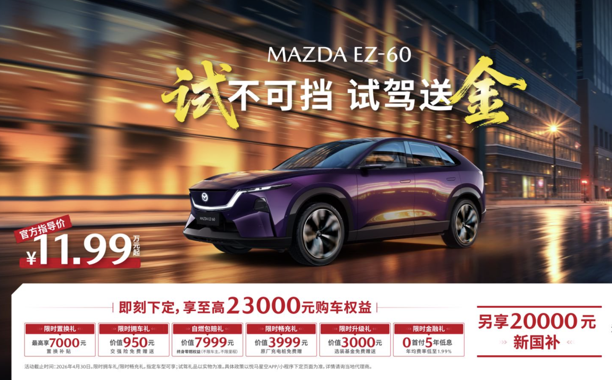 汽车商评从长安马自达官方了解到,即日起至4月30日,这份被誉为“史上最具含金量”的权益,与至高2万元以旧换新国补、价值2.3万元的6重购车礼遇联动,累计让利高达4.3万元。