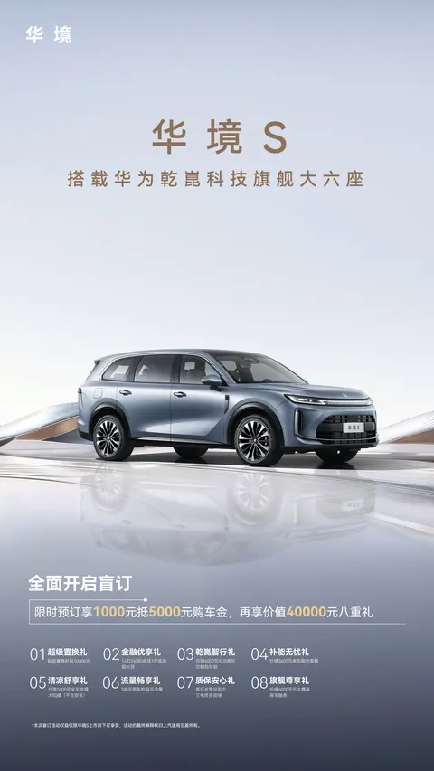 标配华为乾崑ADS Pro以及鸿蒙座舱:华境S开启盲订,大六座市场竞争迎来白热化