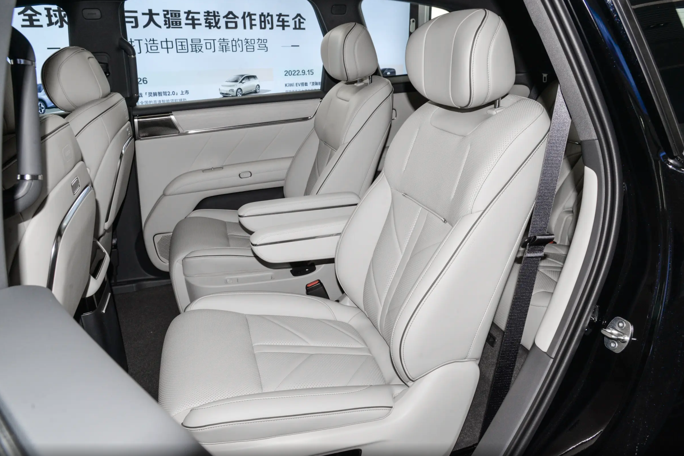 2+2+2的座椅布局,二排座椅配备独立腿托,同时二排还配有车内吸顶屏以及二排小桌板,同时新车还将首搭华为舱内激光视觉(Limera)功能。预计大家需要的“冰箱、彩电、大沙发”新车都将配备。