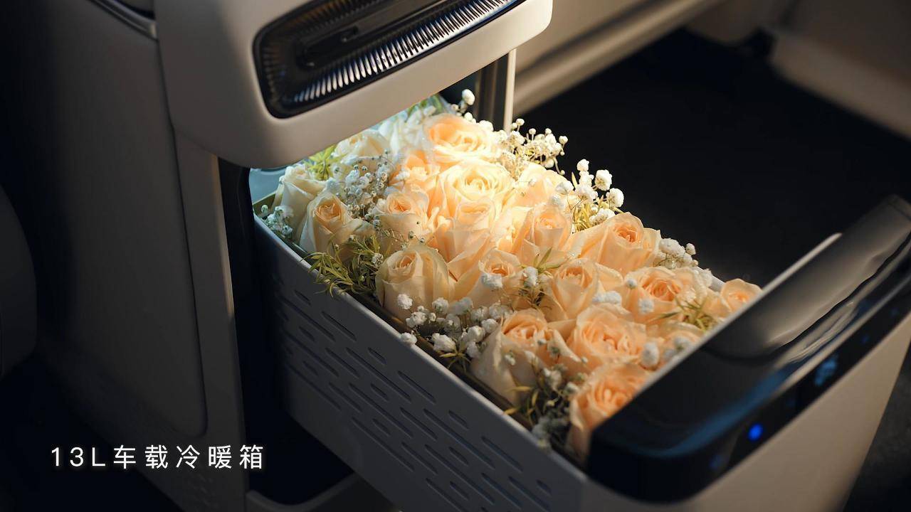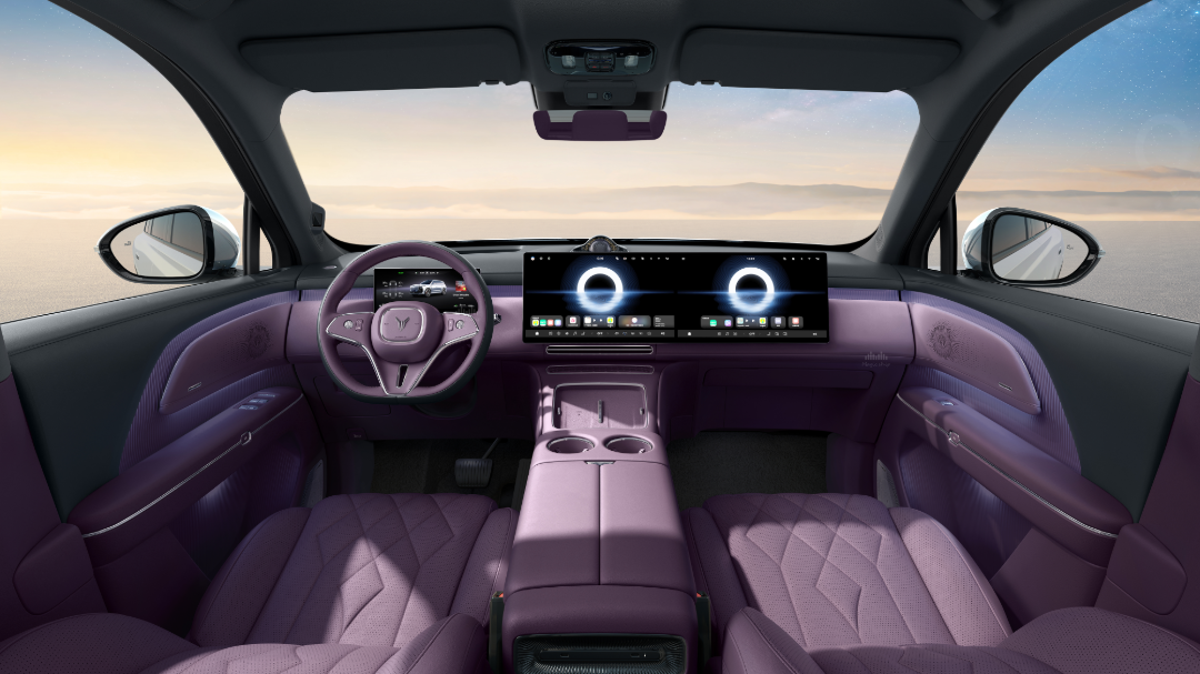 同级最大的13L双开门冰箱、21.4英寸吸顶屏、29扬VoyahSound殿堂级音响,以及高频接触面100%软包、天鹅绒顶蓬、20处256色氛围灯,共同营造出极致奢华的座舱环境。