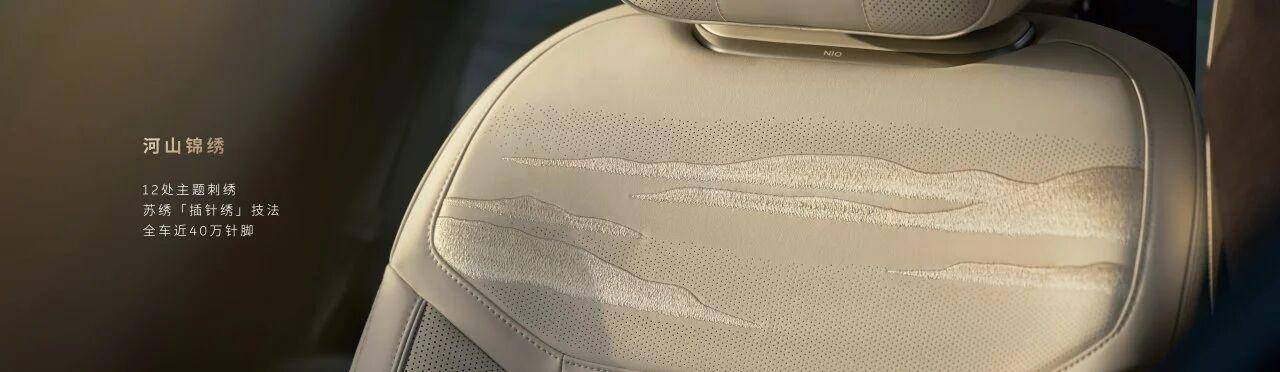 内饰与空间的打造上,ES9重新定义了行政旗舰的空间标准与舒享边界。座舱以“天地入怀,气象万千”为核心理念,独创的天空岛与智能行政中岛布局,在保证座舱通透感的同时,为第二排打造了独立尊崇的行政领域。超过8平方米的全粒面无铬鞣Nappa真皮、高寒地带枫影真木饰板,搭配近40万针脚的苏绣河山锦绣图,实现了中国文化精髓与现代科技的深度融合,跳出了传统豪华品牌“皮革+木纹”的同质化套路。