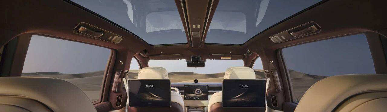 灯光系统更是将科技与艺术的融合推向新高度,6800个微观切割面的晶钻日行灯、2.36米超长光䦀尾灯,搭配行业最大的迎宾光幔与光毯,以光影构建行政级尊崇礼遇。而晨晖金专属车色、地平线特别版融合非遗苏绣的内饰主题,更是将东方美学深度注入高端汽车设计,打破了西方豪华品牌对行政级车型设计话语权的长期垄断。