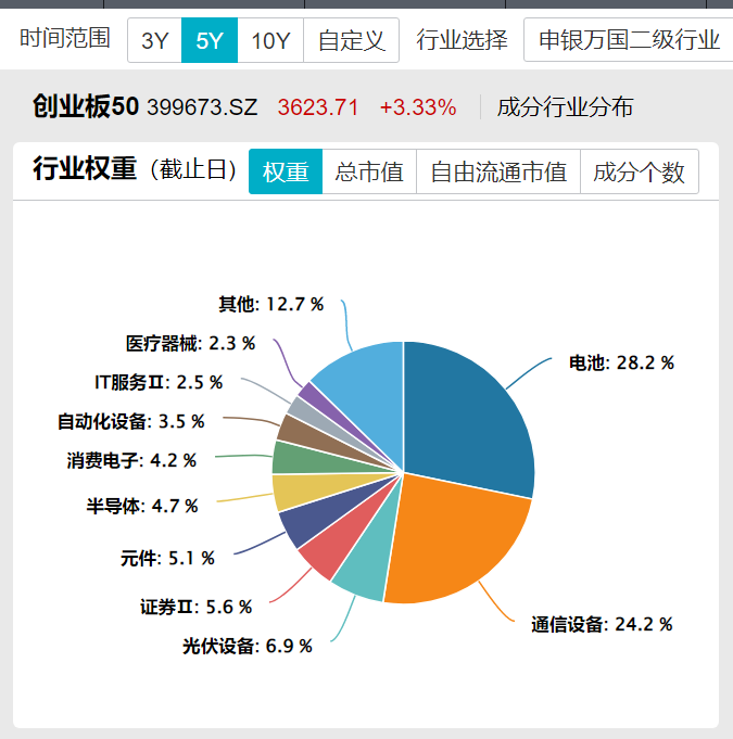万家创业板50ETF(场内简称创业板50ETF万家–159372)紧密跟踪创业板50指数,行业分布前三分别为电池、通信设备、光伏设备等新质生产力。前十大权重股中,东方财富、阳光电源双双涨超5%,宁德时代、中际旭创涨超3%,新易盛续创新高,总市值突破5000亿元。