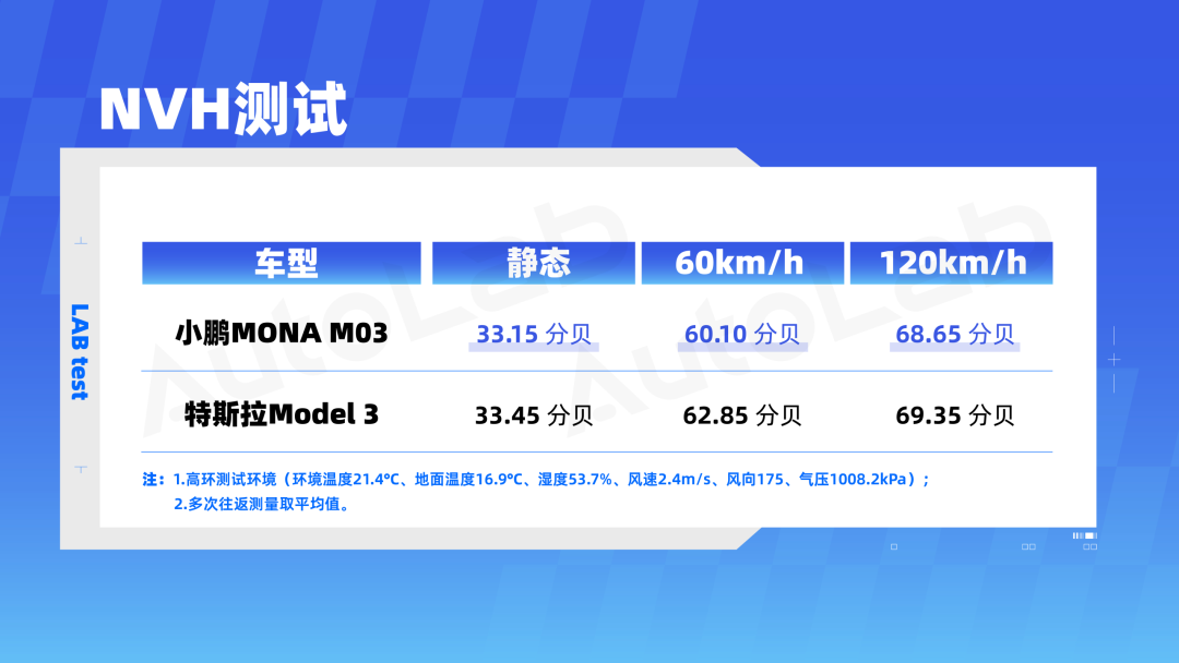 三个工况下,小鹏MONA M03车内NVH都更好倒是不意外。