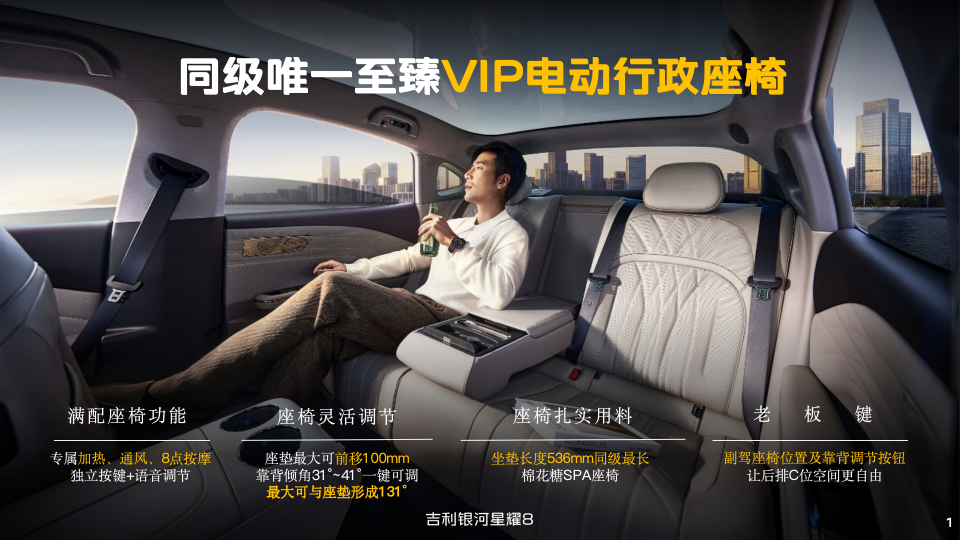 吉利银河星耀8远航家系列秉承“豪华平权,起步即旗舰”的理念,将越级舒享体验带入中高级轿车市场,让豪华触手可及。