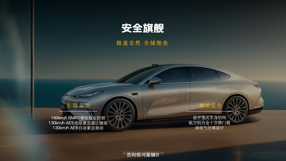 秉承“安全,就是吉利”的造车基因,吉利银河星耀8远航家以领先科技重塑安全标准,为用户构建起全方位移动安全堡垒。主动安全层面,新车搭载同级领先的BMXS爆胎稳定控制系统,通过直采式胎压传感器,50毫秒即可完成采样判定,响应时间提升32倍,在160km/h直线车速与120km/h弯道车速下,可毫秒级介入稳定车身,即使突发爆胎也能稳稳掌控方向;AES紧急避让辅助支持最高130km/h车速下的紧急避让,并可实现连续两次避让(OTA升级后),无论是前车急刹、突发障碍还是后方夹击,系统都能主动规划最优路径,化危机于无形。