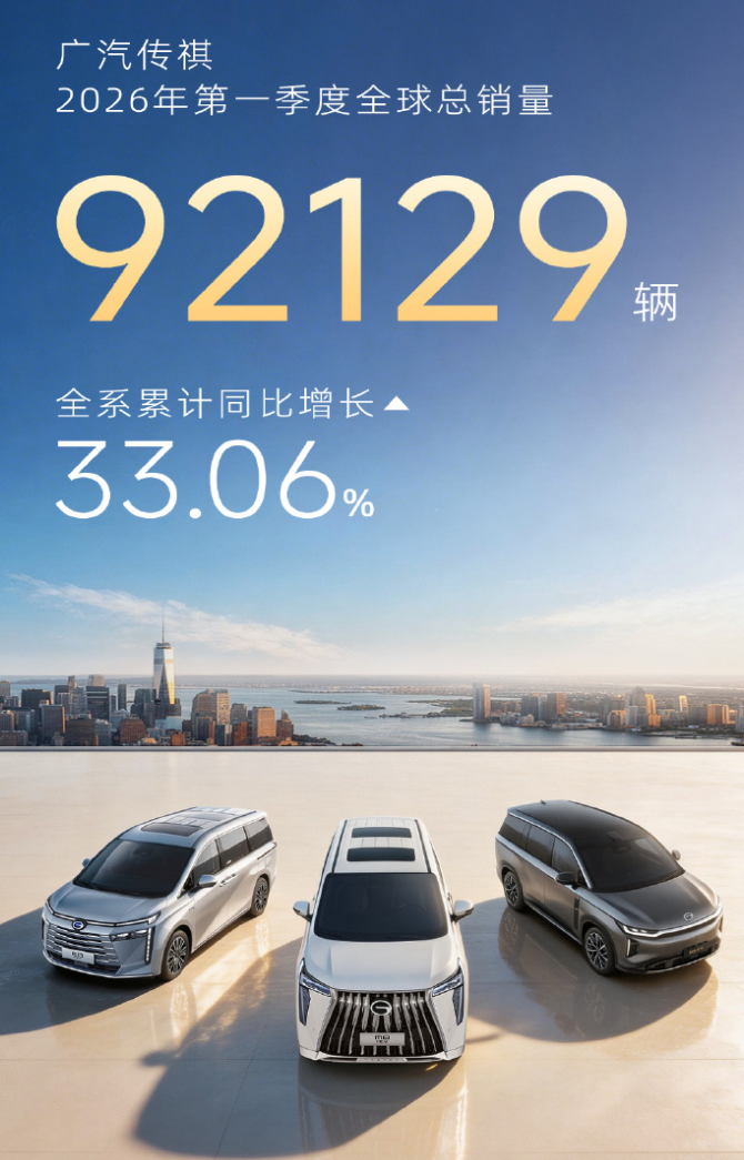 2026年的中国车市,依然在激烈竞争中砥砺前行。但就在这样的大环境下,广汽传祺交出了一份不错的成绩单。先看一组硬数据:2026年第一季度,广汽传祺全球总销量92129辆,同比增长33.06%。在车市整体增速放缓的背景下,这样的增幅堪称“现象级”。最近,更有近20家头部经销商集团集中入网……传祺正用实打实的成绩告诉大家“变革的效能在不断向上”。