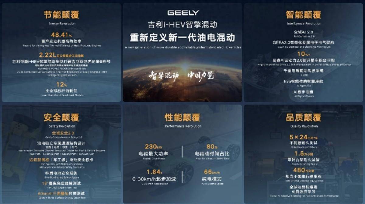 2026年4月13日,吉利汽车集团正式发布全球新一代AI油电混动技术方案——i-HEV智擎混动,以“五大颠覆”技术革新,重构油电混动出行体验,树立全球油混技术新标杆。