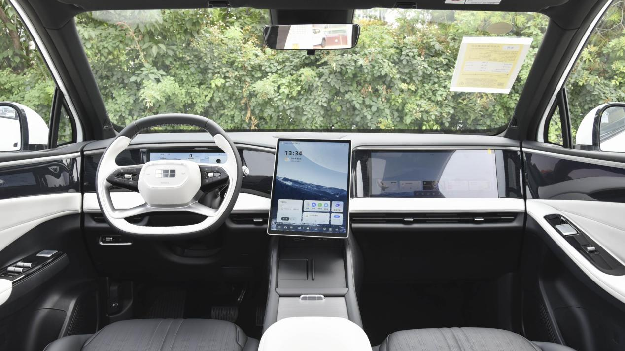 走进枭龙车内,同样能察觉到简洁之美,T字形的方向盘带给人极强的运动感,恰到好处的皮质包裹,营造出不俗的高级质感。车内使用了12.3英寸的中控大屏幕+7英寸的液晶屏幕的组合,未搭载任何的车载系统,使得车机整体操作体验较为一般。