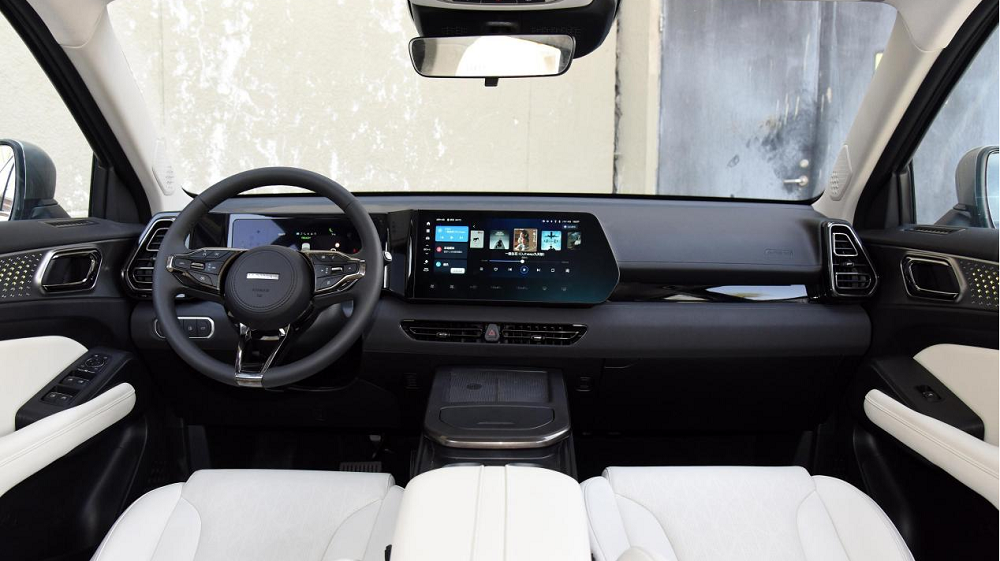 银河L7的内饰则给人以一种“未来科技”的观感,黑白双拼色的设计显得相当有格调,