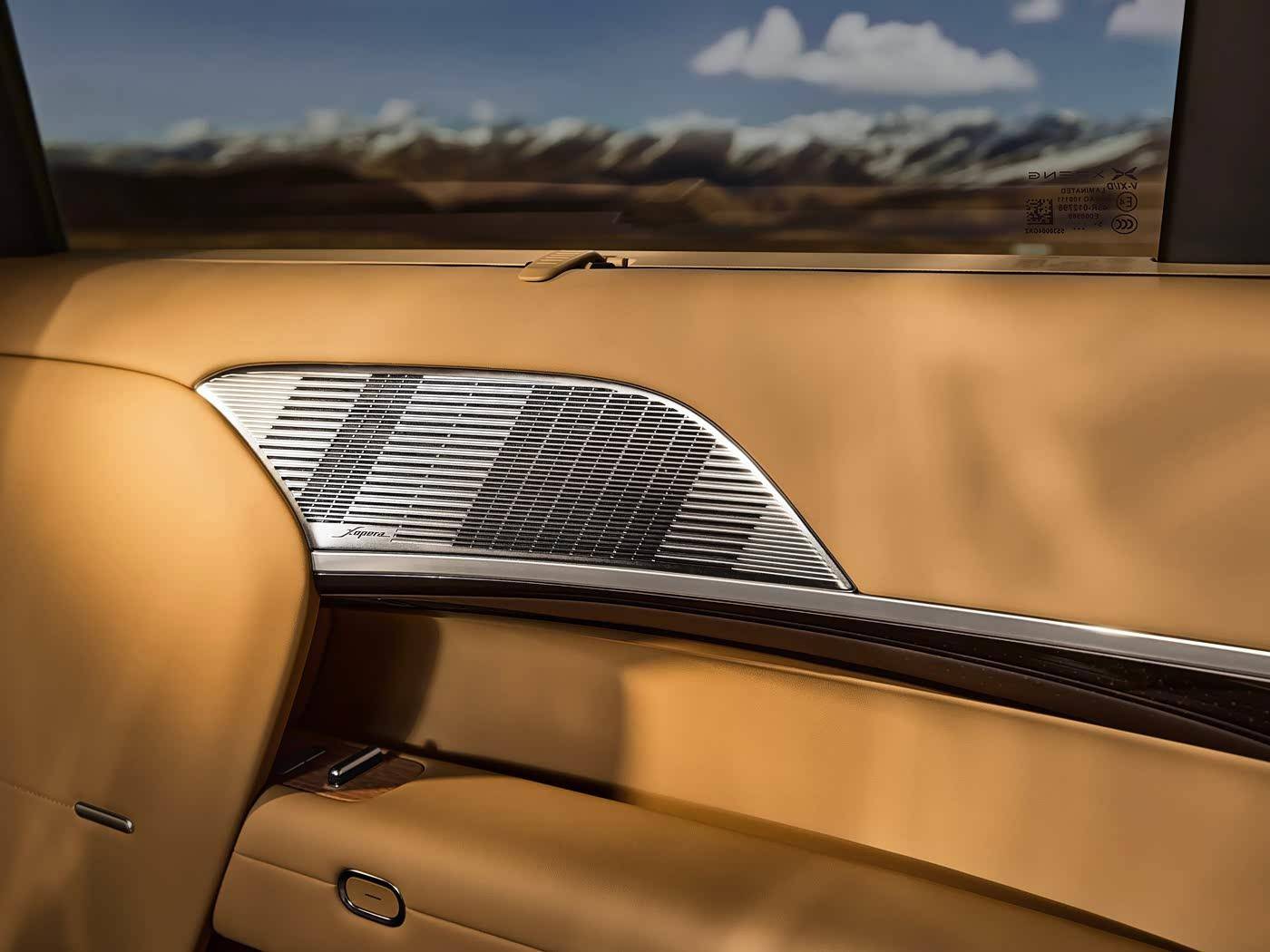 配色方面,图片中偏居家的棕色,看上去非常温馨,而且细节之处还有镀铬元素进行点缀,精致感同样不俗。配置上新车还有33枚聆境AI音响Max,拥有7.1.6.8沉浸式全景声,其中有8个头枕扬声器,相信这也是新车的一大卖点。