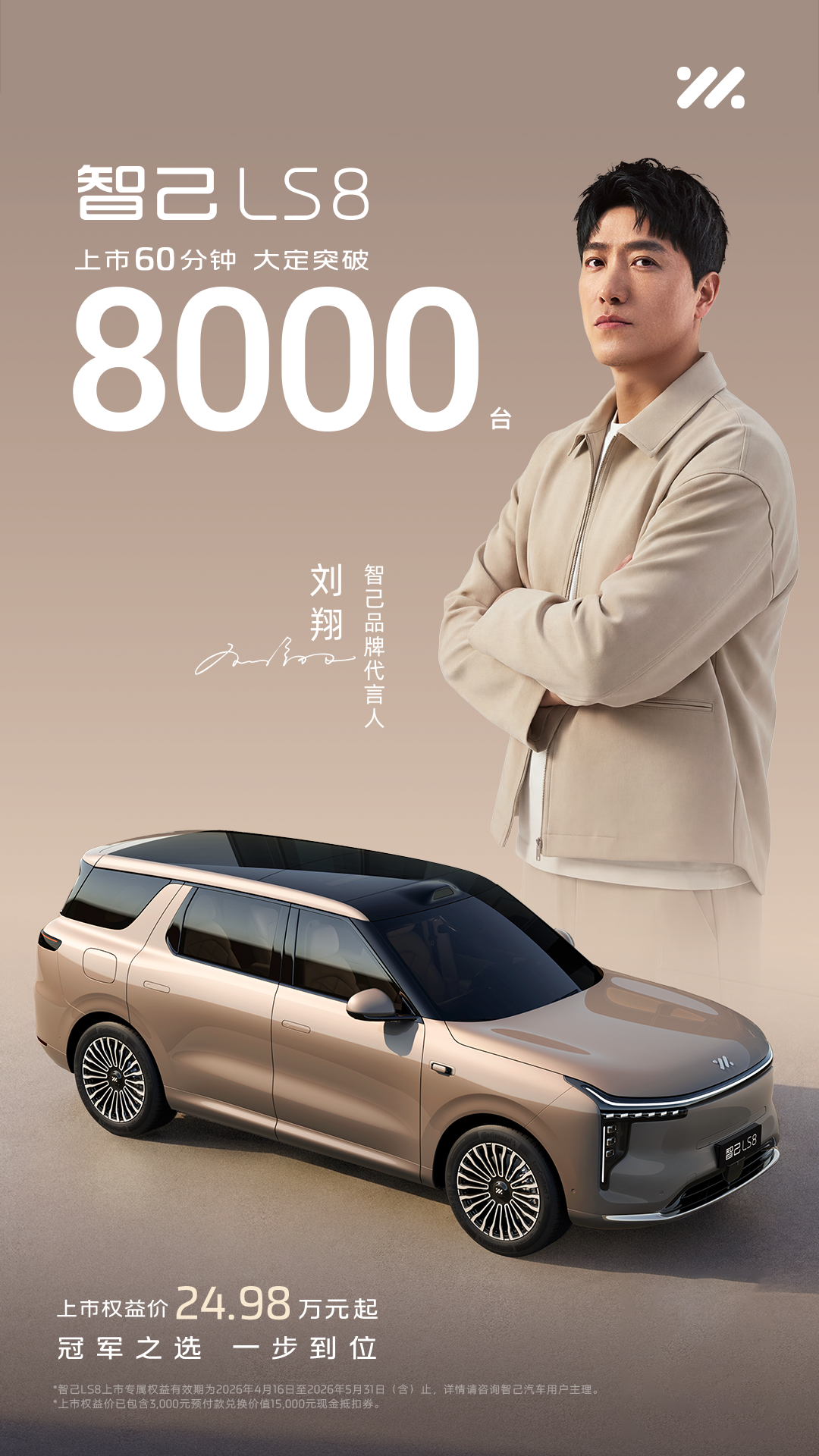 发布会现场,智己品牌代言人刘翔惊喜亮相,盛赞智己LS8的百万级驾控质感、前沿智能体验与超大乘坐空间。从赛道到人生,刘翔以永不设限、突破自我的冠军精神,一次次成就“传奇”,成为跨越时代的国民符号。这也正是智己不断突破极限,“不设限、不妥协、不随流” 品牌精神的最佳诠释。