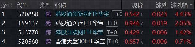 港股创新药彰显高弹性,100%创新药研发标的——港股通创新药ETF(520880)场内价格劲涨4.43%;港股医疗核心资产——港股通医疗ETF(159137)收涨2.05%放量连阳。