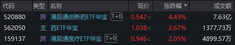 【药价领域重磅改革!政策组合拳发力,华宝基金港股通创新药ETF(520880)放量涨超4%! 机构全面看多创新药】