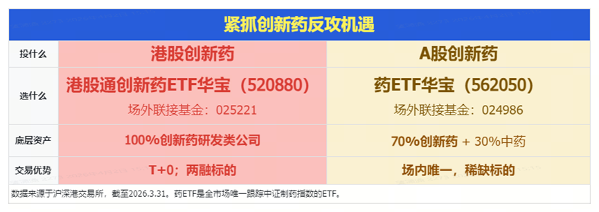 投创新药,认准港股通创新药ETF华宝(520880),100%布局创新药研发类公司,前十大权重股占比超七成,龙头属性突出,底层资产是港股,高弹性、T+0。