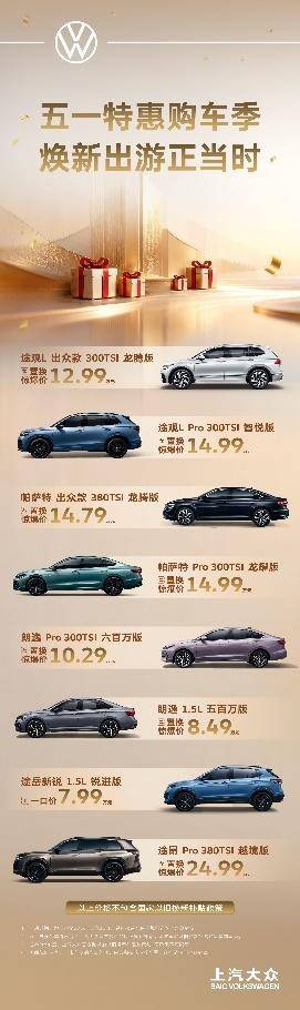 上汽大众多款明星车型五一放“价”,朗逸置换惊爆价8.49万元起,手慢无