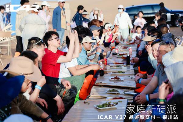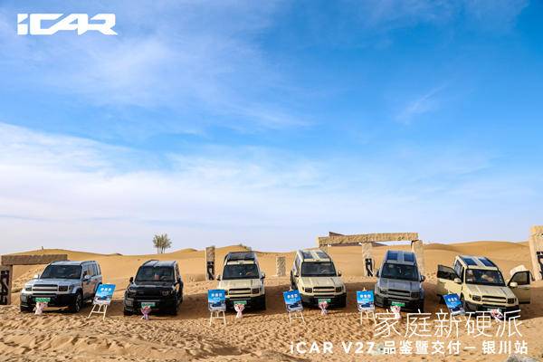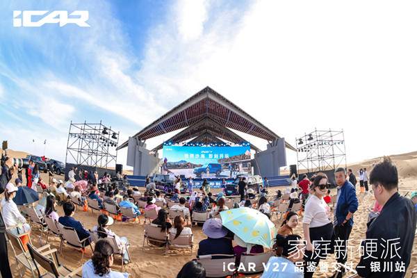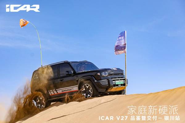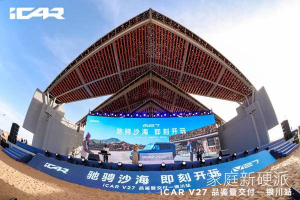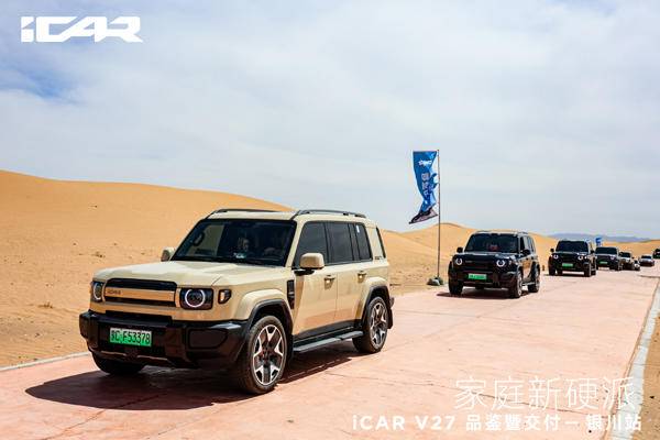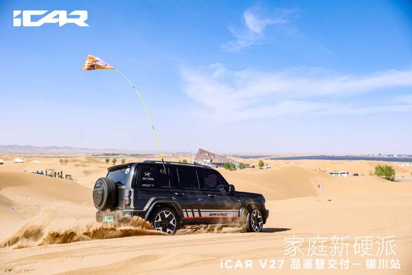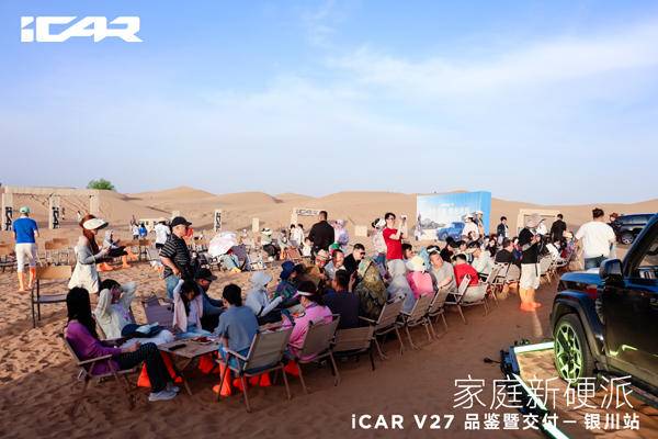 《车矩阵》本地新闻:4月18日,在“星星的故乡”宁夏中卫市,广袤浩瀚的腾格里沙漠腹地,一场以“驰骋沙海 即刻开玩”为主题的iCAR V27品鉴暨交付活动盛大举行,这场聚焦新能源硬派SUV领域的盛会为现场嘉宾和媒体记者呈现了iCAR品牌全新的产品实力,更让这款中大型家庭硬派SUV以全方位的优势亮相公众视野,凭硬核实力打破硬派SUV“重越野、轻智能”的固有格局,为行业注入新的发展活力。