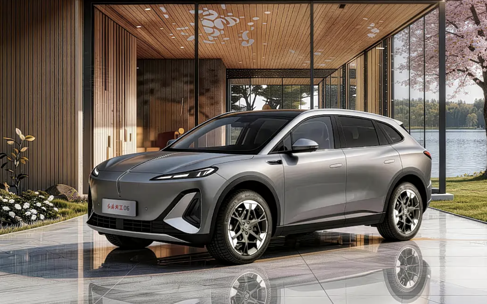 再看天工06,中型纯电SUV,封闭式格栅、隐藏式门把手,红旗新能源LOGO居中,还能选装侧旗标,前脸下部贯穿式格栅。SUV车型最怕臃肿,这款车线条简洁,比例协调,家用稳重,商用也得体。没有复杂的线条、夸张的套件,靠简约大气撑气场,这才是长久之计。