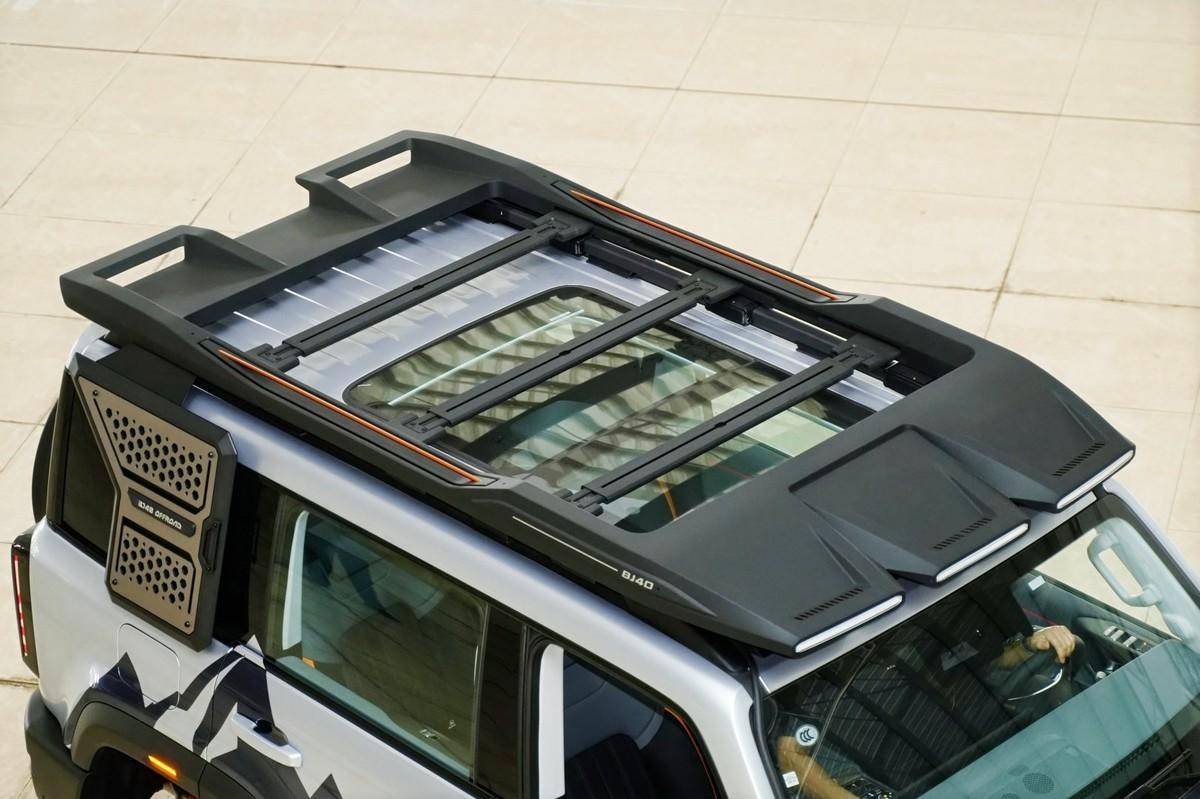 中度改装着力点是全家出游更从容。对于经常带家人出去玩的用户,这三项套件简直是“刚需”。车顶平台扰流板二合一可调横杆,装载自行车、帐篷更从容,扰流板有效降低风噪;战术侧挂板可外挂脱困板、工兵铲等装备,释放后备箱空间。侧踏板便于老人小孩上下车更安全,还能防剐蹭、防侧碰。