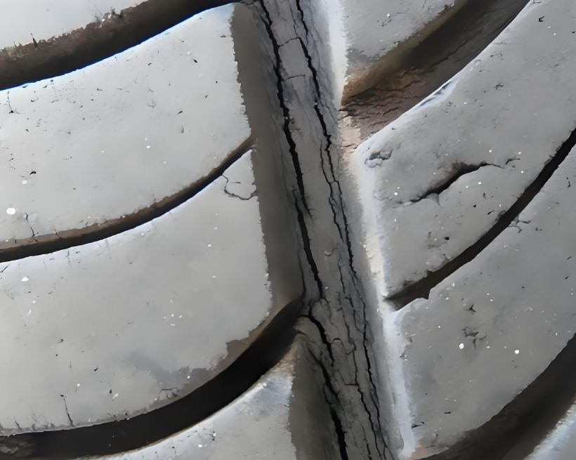 胎冠是轮胎最厚的区域,不过从胎冠沟槽底部到轮胎内部的气密层的厚度也不到10毫米,开裂达到2毫米左右即需要更换;否则车辆高速长距离行驶时有较高的爆胎风险,在非铺装崎岖道路行驶时也容易爆胎,毕竟胎冠在行驶中会被崎岖不平的路面持续的拉扯。