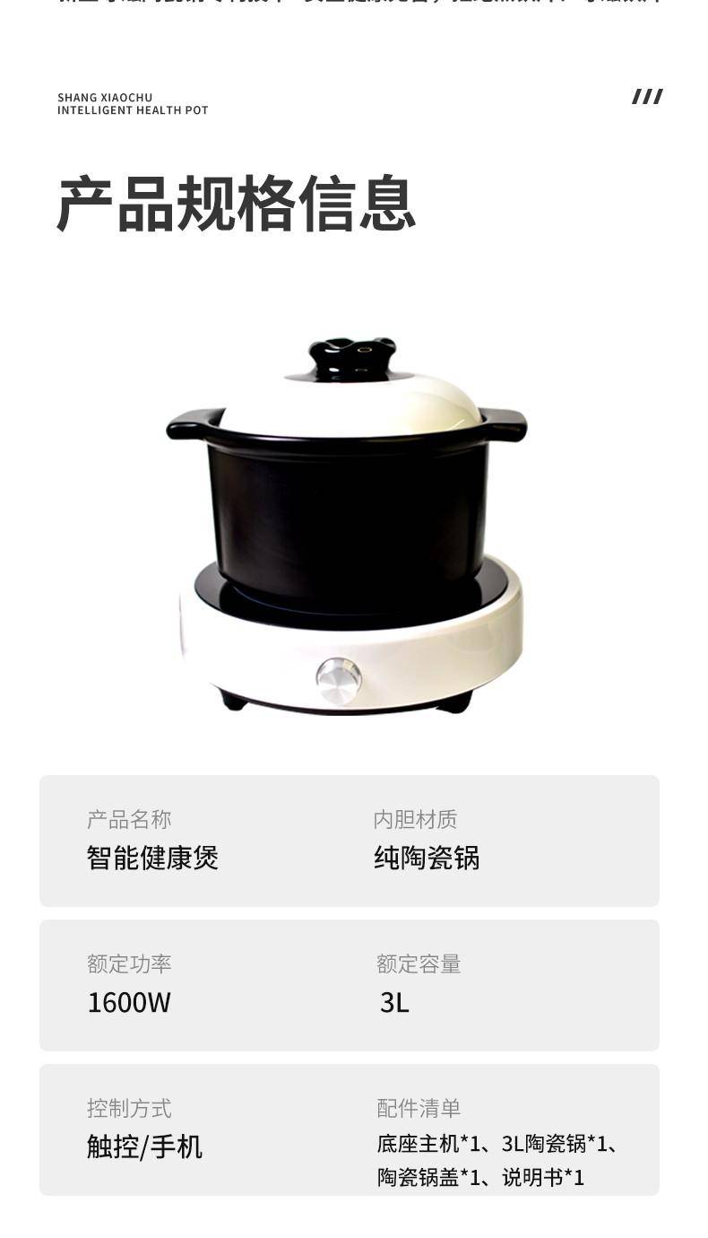 依托导磁专利技术,京尚进一步打造尚小厨智能健康煲,融合AI智能与物联科技,构建一站式智慧烹饪解决方案。产品搭载智能云平台小程序,内置海量家常菜谱与药膳大师定制食谱,支持WiFi远程操控、一键启动烹饪模式,精准调控火候与时间,煮、炖、蒸、炒一机搞定。同时配备多重安全保护,防干烧、过热自动断电,使用更安心。3L黄金容量适配家庭日常,黑白简约外观百搭各类厨房,高效节能设计大幅降低能耗,真正实现“轻松烹饪、健康无忧”。