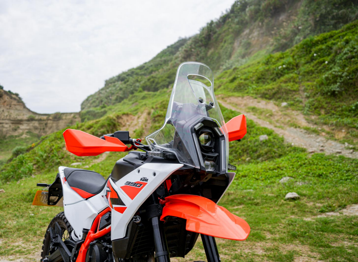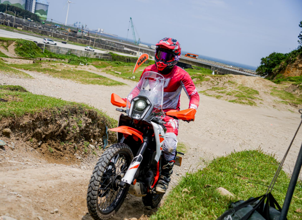 本次活动的重头戏莫过于 390 ADVENTURE R,这台车在外型上完全承袭了 KTM 在拉力赛的冠军基因,车头部分采用了极具侵略性的高耸风挡与 LED 灯组, 这种塔式导航架的视觉感让它在一众多功能车中显得鹤立鸡群。