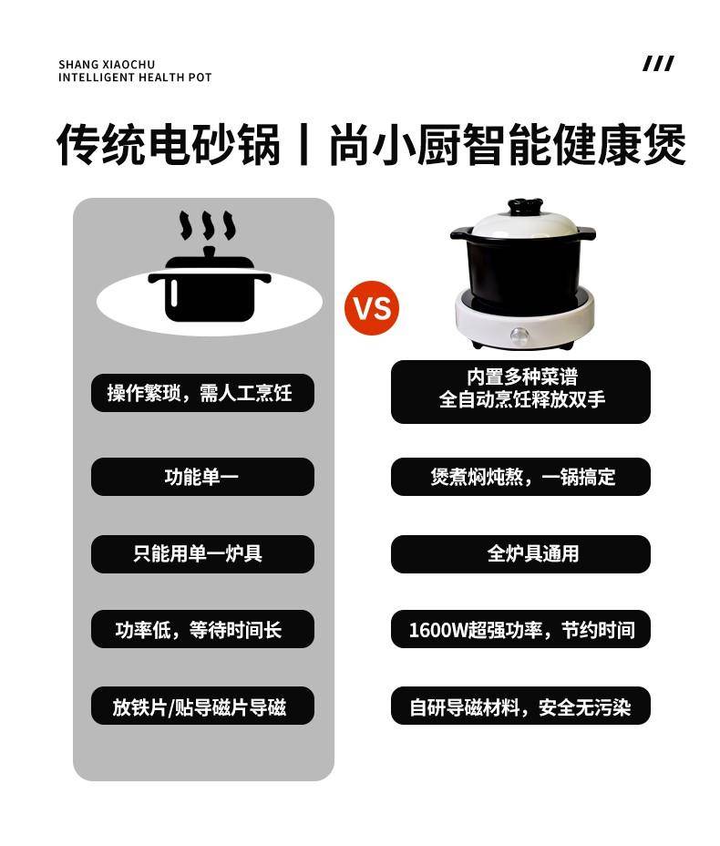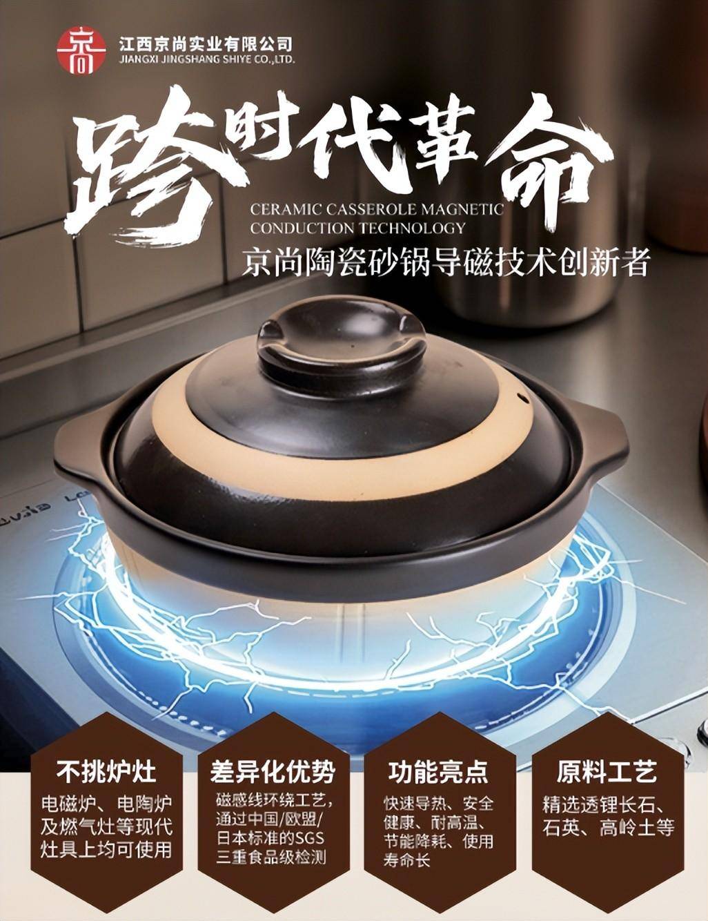 京尚导磁陶瓷锅核心优势在于真导磁、全适配、超健康。区别于传统导磁方式,产品采用专利导磁材料与特殊喷涂工艺,实现锅底全包裹导磁,兼容电磁炉、明火、电陶炉等各类炉具,适配国内外主流品牌设备,真正做到“不挑灶具、随心烹饪”。实测导磁效率较传统产品提升100%,电磁炉功率利用率高达98%,加热更快、能耗更低,商用场景可大幅降低电费支出,性价比突出。