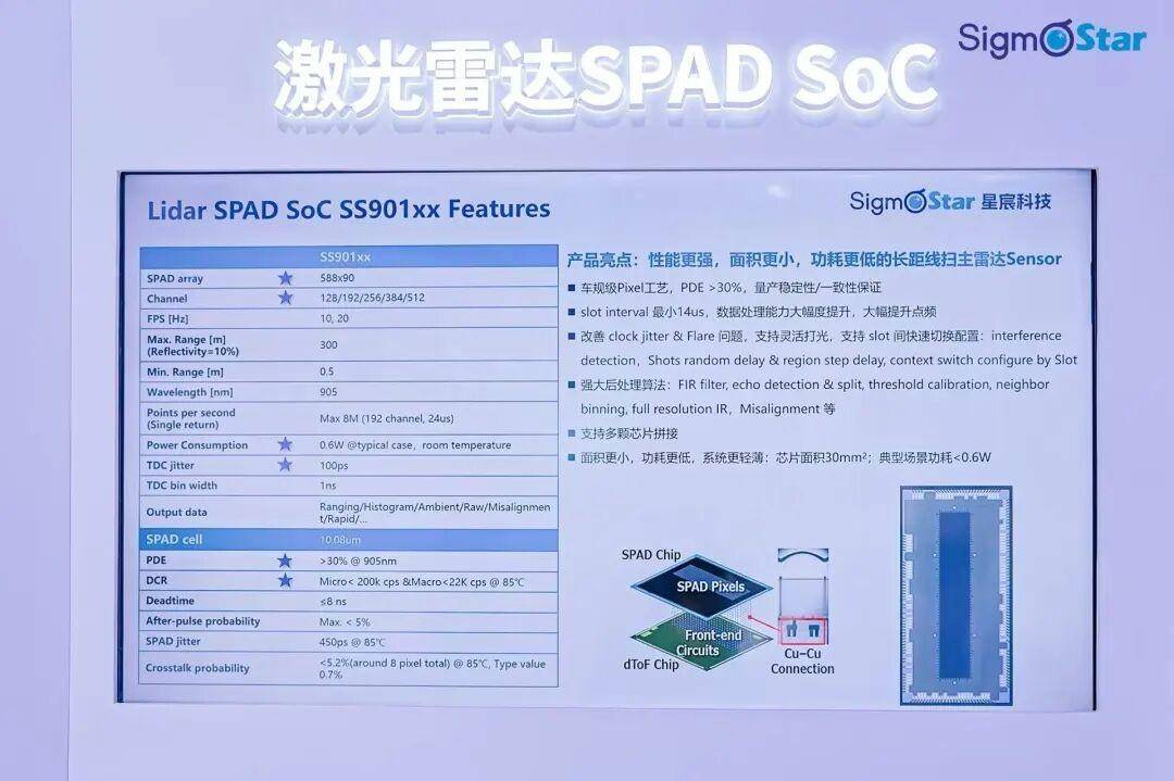 SS901xx是星宸科技首款车规级激光雷达SPAD SoC,面向长距线扫主雷达应用,具备性能更强、面积更小、功耗更低的优势。
