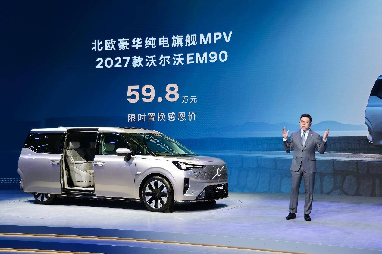 随着纯电双90的预售开启,沃尔沃纯电旗舰90系列中的EM90也在此次车展上迎来焕新上市。叠加权益后,2027款EM90的限时置换感恩价来到了59.8万元。作为一款专为顶级成就者定制的豪华纯电MPV,EM90凭借三大核心优势,完美契合了顶级人群的高品质出行需求。