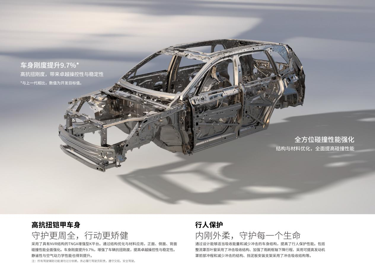 高品质,是守护底线的偏执。以全新第六代荣放为例,其白车身80%经过了重新设计,A/B柱采用了1470兆帕的超高强度钢。这些数据消费者看不见,摸不着,但在每一次意外发生前的极限避险中,在历经十年颠簸后车身依然紧致如初的体感里,大厂的良心会自己说话。这份品质,不是为了应付碰撞测试的应试教育,而是对千万家庭身家性命的敬畏。