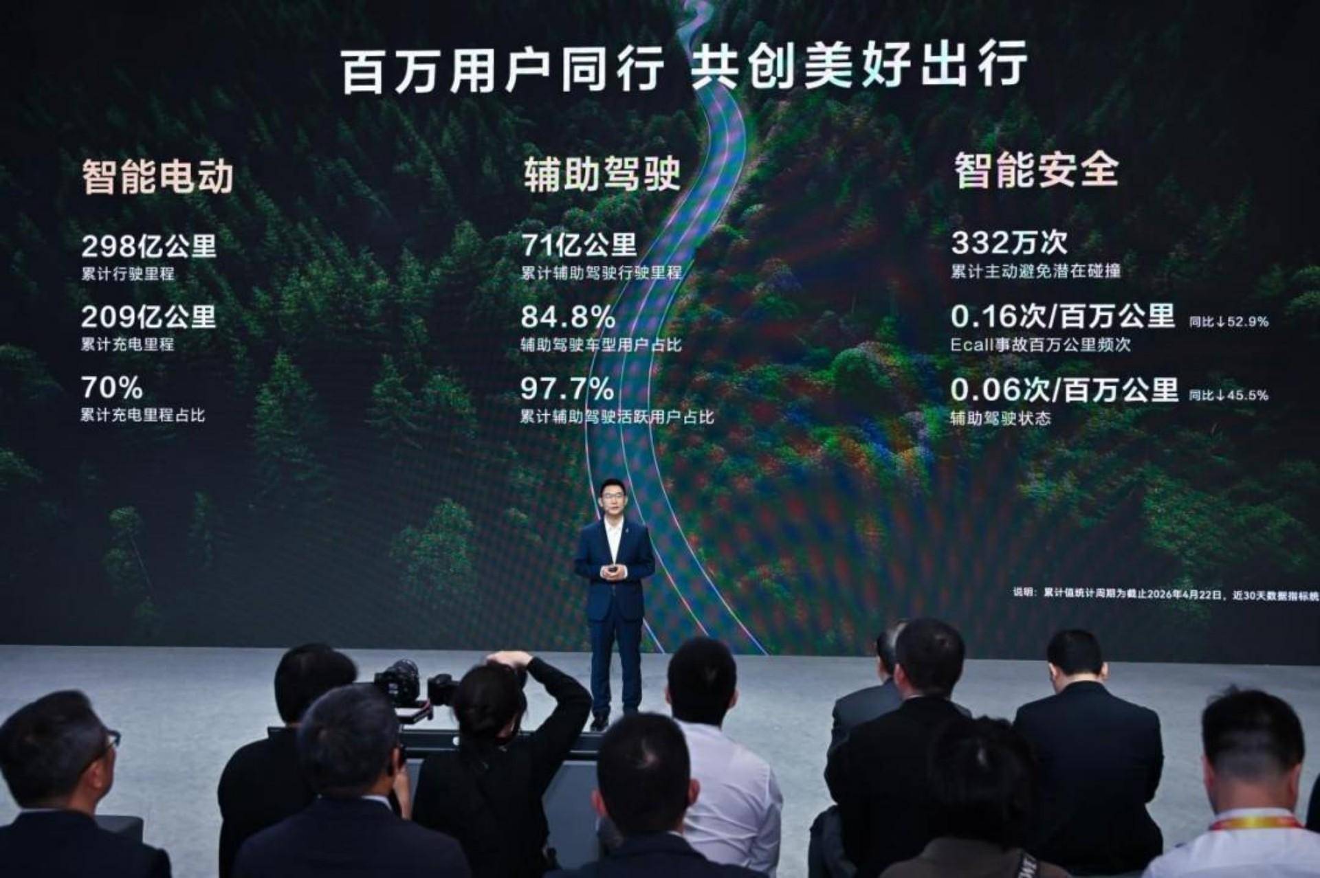 车展期间,问界还分享了一组亮眼数据:问界用户充电行驶里程占比70%;辅助驾驶总里程超过71亿公里;累计辅助驾驶活跃用户占比97.7%;累计主动避免潜在风险332万次,在无数场景中有效规避风险、守护出行安全。这一组真实数据,充分印证问界早已成为用户心中值得信赖的可靠伙伴。