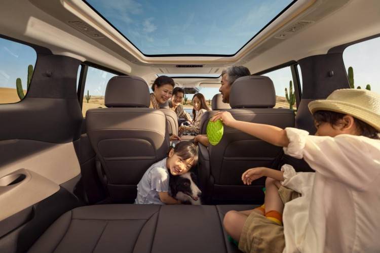 座舱舒享方面,该车采用国家大剧院声学座舱设计,配备24处声学隔断、5mm双层隔音玻璃,搭配22扬声器音响系统、21.4英寸二排折叠屏、四温区中央空调、2.77平米穹顶天幕及10L智能冷暖箱;第二排配备零重力按摩座椅,第三排标配加热功能与独立出风口,实现全舱舒享体验。