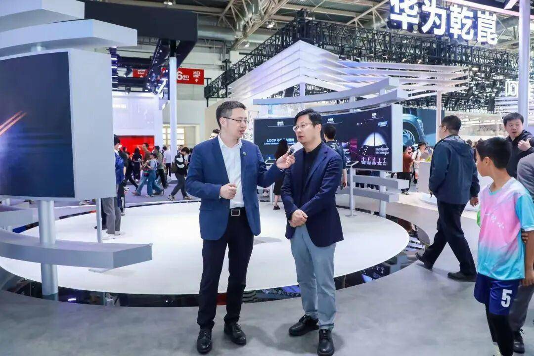 4月26日,奕境汽车品牌总经理曾清林与华为智能汽车解决方案BU CMO程秋涛在华为乾崑展台进行了深度交流。