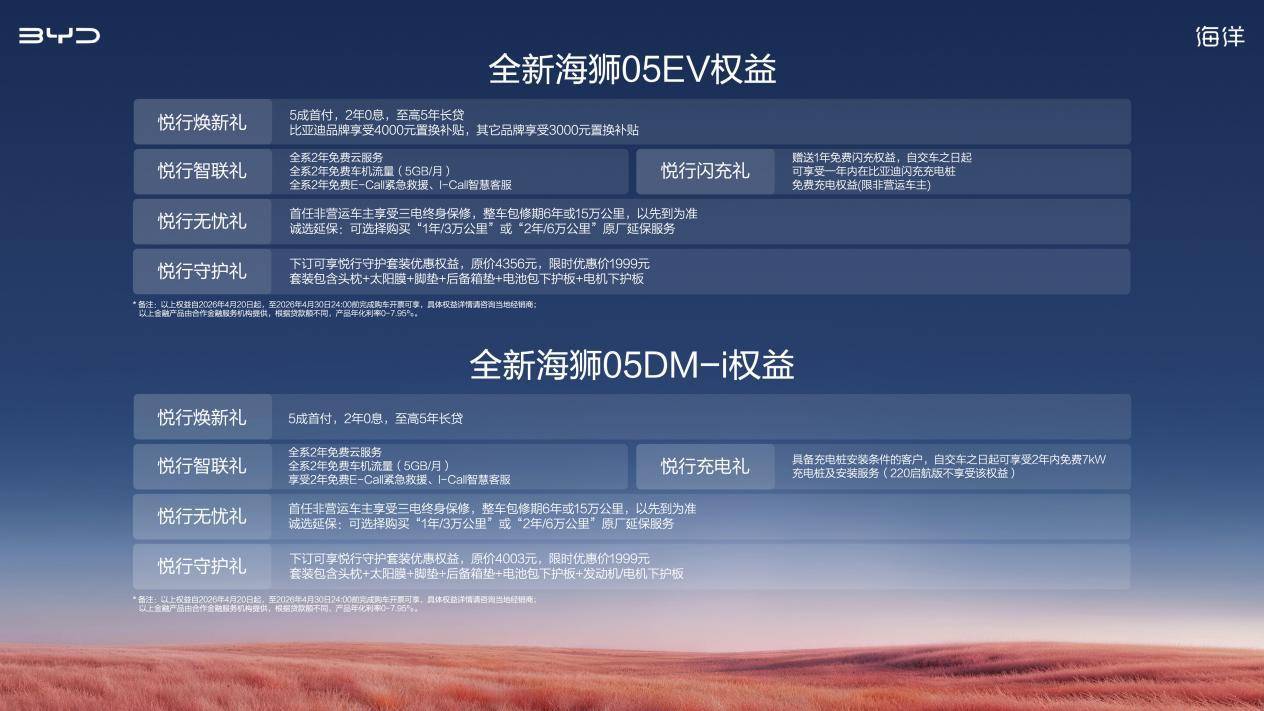随后,比亚迪汽车海洋网比亚迪汽车海洋网兴德隆旗舰店产品讲师张海洋先生对四款车型核心优势进行详细解析,并同步公布官方指导价与多重购车尊享权益。其中全新海狮05EV官方指导价11.99万元-14.59万元,全新海狮05DM-i官方指导价9.79万元-12.79万元,凭借心动颜值、尽享驾趣、智驭无忧、舒享满座、出色守护五大核心亮点优势,刷新A级SUV价值新标杆,现下订全新海狮05可享“5成首付,2年0息,至高5年长贷”、“最高4000元置换补贴”“全系2年免费云服务”等多重悦行权益,助力更多年轻用户轻松购车,开启都市智电出行新生活。