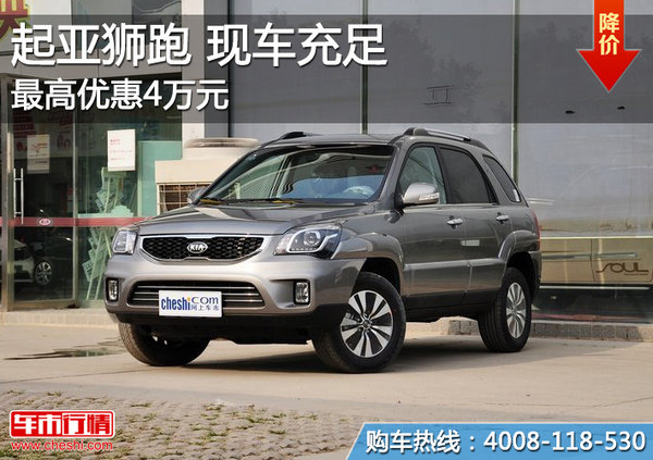 近期,编辑从东风悦达起亚北京津丰华北4S店了解到,2013款狮跑现车充足,颜色可选。售价方面,购车最高可优惠4万元,惠后最低仅售12.38万元。具体如下: