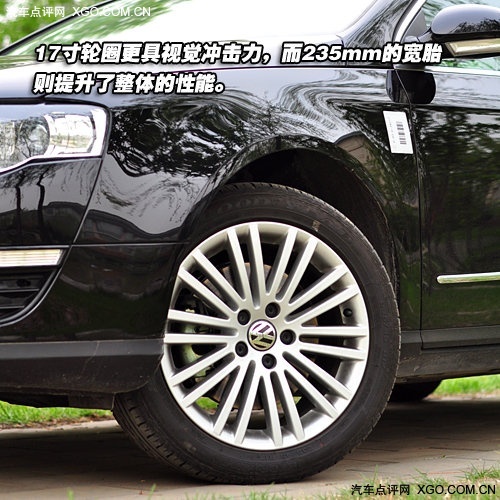 外形上2011款迈腾整体变化不大,着力于细节上的修改。首先是2.0T车型采用了17寸轮圈,并且轮胎规格升级为235/45 R17。现如今厂商越来越喜欢给产品配一双大脚,提升视觉效果以及性能,早前迈腾215mm的宽胎还算够宽,但现在面对动辄使用245mm宽胎的对手们,迈腾换胎也成了顺理成章的事情。