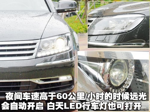 氙气并带有转功能的大灯系统已经无需多说,如今这样的配置在很多中级轿车上也有所配备。但新辉腾与一般车辆不同的是,每当夜间车辆的时速超过60公里/小时,那么大灯系统会自动开启至远光模式。而为了不影响对向车辆不至于给对向车辆的驾驶员造成眩晕,辉腾的大灯可以通过位于前挡风玻璃后方的摄像头识别对向车辆,在会车的时候调整大灯远光照射角度以免影响对向驾驶员。